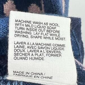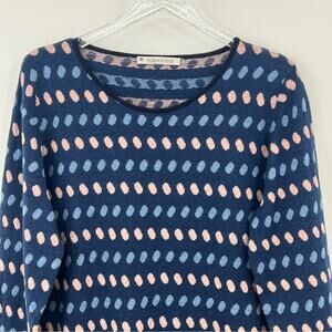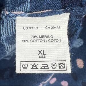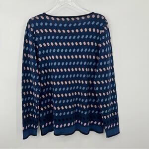 Mansted sweater merino wool blend navy blue tan geometric print pullover XL