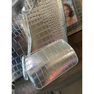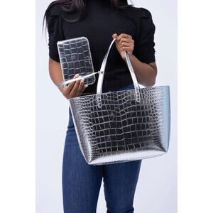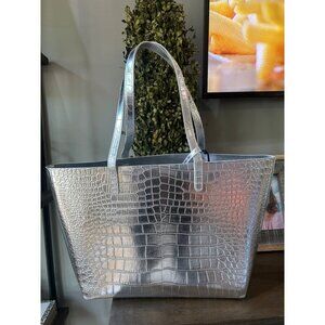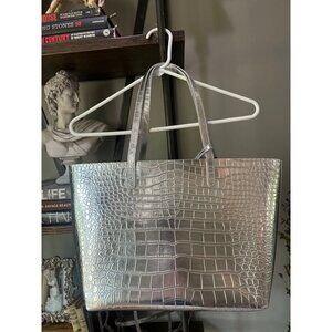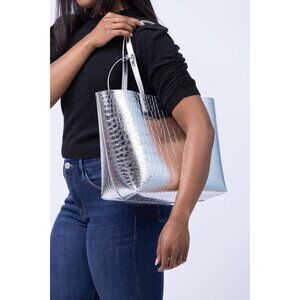 Mansur Gavriel Large Metallic Croc Tote Silver Womens Size OS