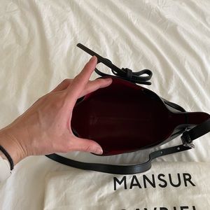 Black leather in outside, bright red on inside. In good condition - used less than 10 times with some exterior leather wear and tear / stain. Price reflects discount due to wear and tear.