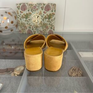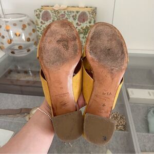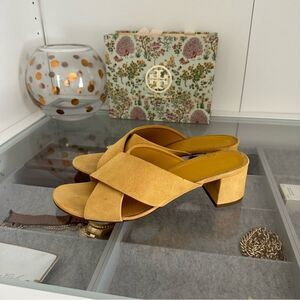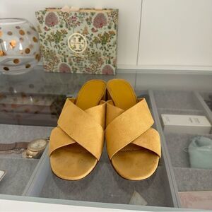Mansur Gavriel Yellow Sun Suede Crisscross Crossover Block Heel Sandals Size 39