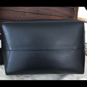 Mansur Gavriel black with red interior bucket bag. Large size. Last picture is a screenshot of the the bag's description and measurements. Slightly used, comes with dust bag.