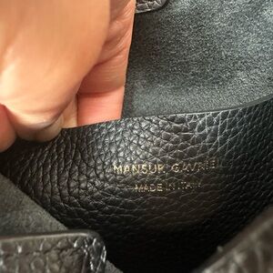 Chic black leather tote by Mansur Gavriel. Features a textured finish and a single strap. Size small in color black. Very good used condition