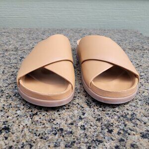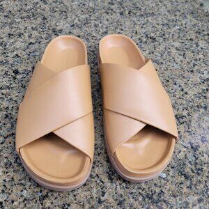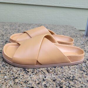 Mansur Graviel Everyday Cross Slide Sandals in Camel Lambskin