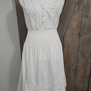 This elegant white dress features delicate embroidery, perfect for any occasion.