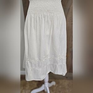 Manta Cotton Embroidered Mexican Chiapas Natural Midi Dress. Cream. US M/L
