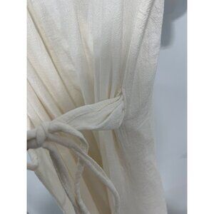Manta Del Lago Embroidered Wrap Dress Womens Large Short Sleeve Cream Minimalist