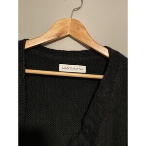 Mantaikotai Womens Cardigan Large Black Wool Chunky Knit Open Front Sustainable