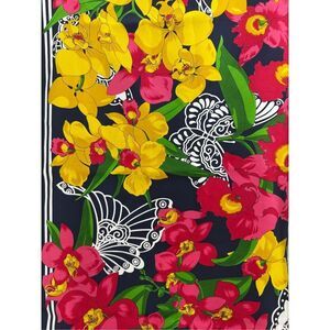 A beautiful scarf with pink and yellow orchids and butterflies!
