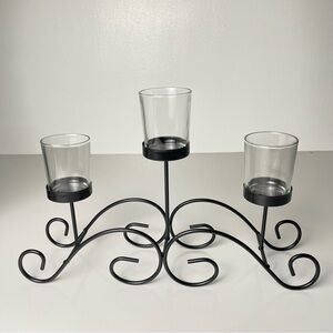 Mantle Candleholder Three Votive Glass Candle Holder- Metal