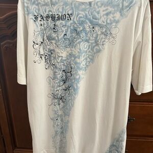 Mantmax Fashion White and Blue Graphic Men's Shirt.