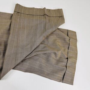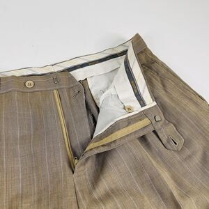 Mantoni 46L Suit 36x31 Pleated Beige Striped 100% Wool Four Button Lined