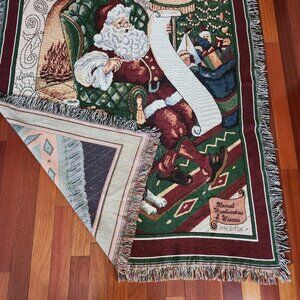Manual Woodworks Weavers Tapestry Woven Christmas Santa Husky Throw Blanket