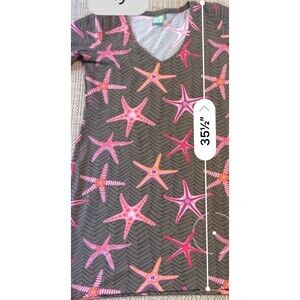 Manuel Canovas 1/2 Sleeve Dress US 10/12 Brown Starfish Print Stretch Bodycon