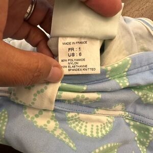 Excellent condition. Strapless with built in sticky liner so top stays in place. Seashells pattern.