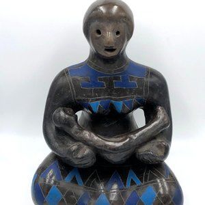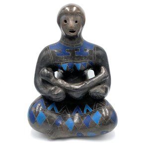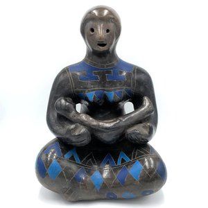 Manuel Felguerez Attributed 10" High Black Mexican Pottery MCM Art Woman Statue