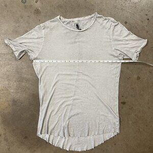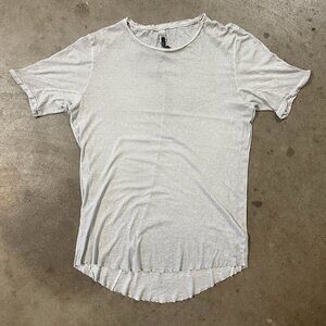 Excellent pre owned Manuel Marte Elongated Scoop Hem Light Gray 100% Cotton Fashion T Shirt Size L. See photos for condition and measurements.