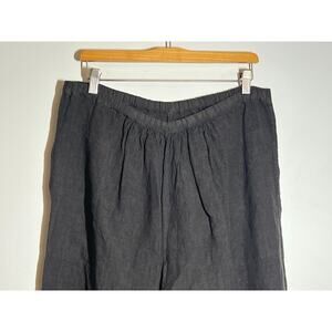 Manuelle Guibal Paris Black Linen Pull On Elastic Waist 100% Linen Pant Size M 2