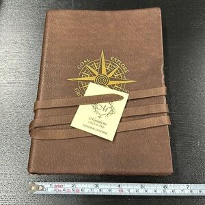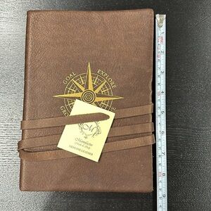 Manufactus Goal Explore Handmade Italian Calfskin Leather Notebook. Brand new. Never opened. No flaws. Handmade soft calfskin notebook with wraparound laces. Handmade hot gold print on the front cover. The inside consists of 128 lined pages.Hand made in Italy.