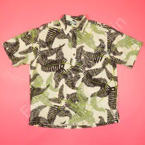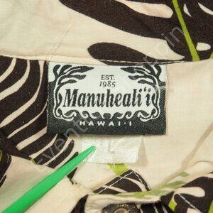 Manuheali'i Hawaiian Shirt Mens L Cream Brown Popover Rayon Vintage 80s
