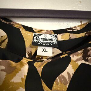 Manuhealii leka top blouse in tiki black with kupukupu ferns in the background in light green and cocoa. Super cute top but I just don't wear it enough. Limited/no longer available. Perfect condition. Size XL. No wrinkle and great for travel.
