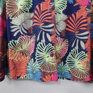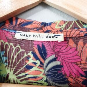 Many Belles Down Tropical Floral Top Sz M Pink Blue Coral Button Up Cropped Tank