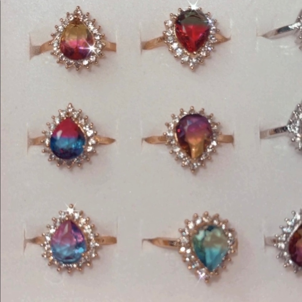 So many rings to choose from! I will show each one individually but they All Are Fabulous 💎 send me a message with your size and the color that you like and I will send you pictures of the ones that are available in that size and color. They ALL are the same price!