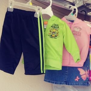 Very nice, well taken care of and worn maybe once or twice. It's my granddaughter and grandsons clothes. They'd come over and they'd have clothes to wear here with gamma.