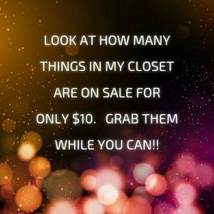 A little of everything. I have reduced many things to 10 dollars. Great for bundling. I am also creating some mystery boxes of womens things in great condition from my own closet. No smoking or pets.