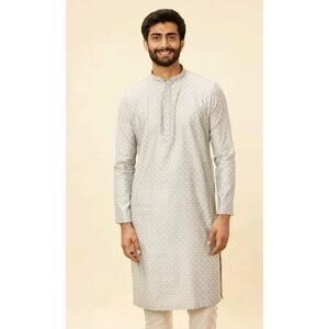 Manyavar Men Blended Cotton Embroidered Kurta Pyjama Set SZ L Gray Top