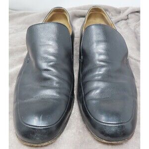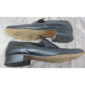 Manz Dress Shoe Mens 9 Black Leather Loafer Slip On Block Heel Made In Germany