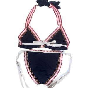 Mapale Bikini Women’s Medium Ties at waist, back and neck Black with crochet trim Excellent used condition