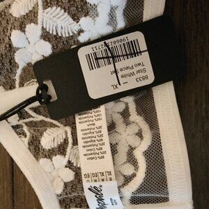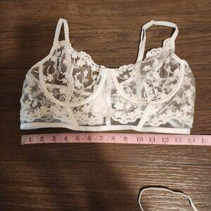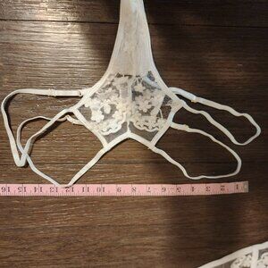 Mapale Lace Longline Bra & Strappy Thong Set NWT White XL