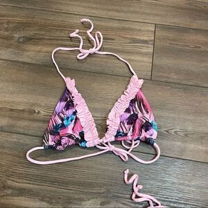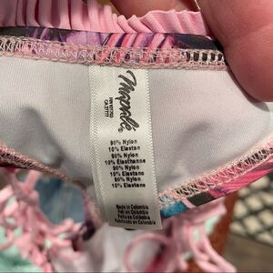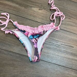 Mapale Pink Palm Bikini w/ Thong Back & Ruffle Trim Swimsuit Medium