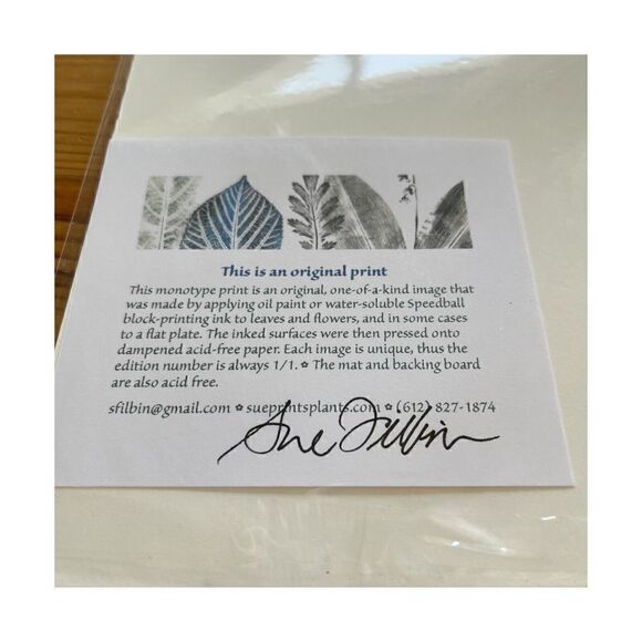 Maple Leaf Art Print Monotype Block Oil Ink Fall Autum Sz 5 x 7 Burgundy Green