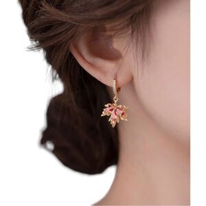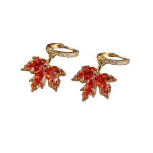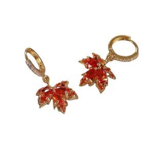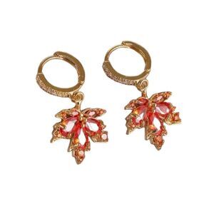 Maple Leaf Cubic Zirconia Drop Earrings Gold Tone Costume Jewelry Size OS