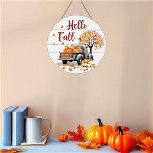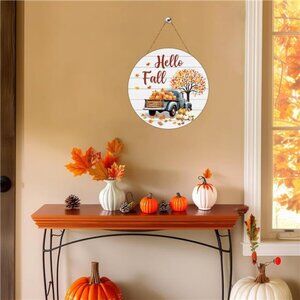 You will get: You will receive 1 piece of fall decorations for home, full of fall elements such as maple leaves, pumpkins, and a truck full of pumpkins, printed with the "Hello Fall" sign, the orange color that symbolizes fall and harvest, full of fall vibes, perfect for decorating your home for fall and Thanksgiving, creating a vibrant atmosphere