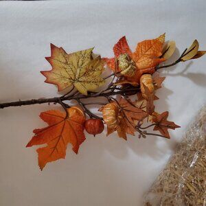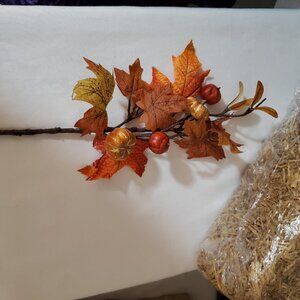 Fall / Autumn Set of (3) 12” Maple Leaf and Pumpkin Branches in Colors of Orange, Yellow, Red, and Gold. Many Decorative Uses – Centerpieces for Tables, Additions to Wreaths, or as Park of a Larger Decorative Arrangement.