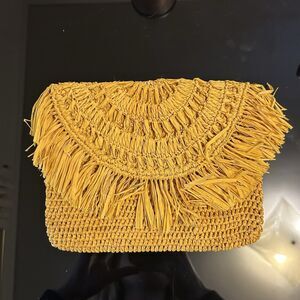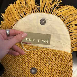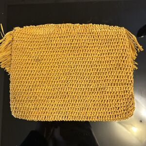 Mar Y Sol Mia Mini Fringe Purse Clutch Yellow Woven Straw Anthropologie NWT