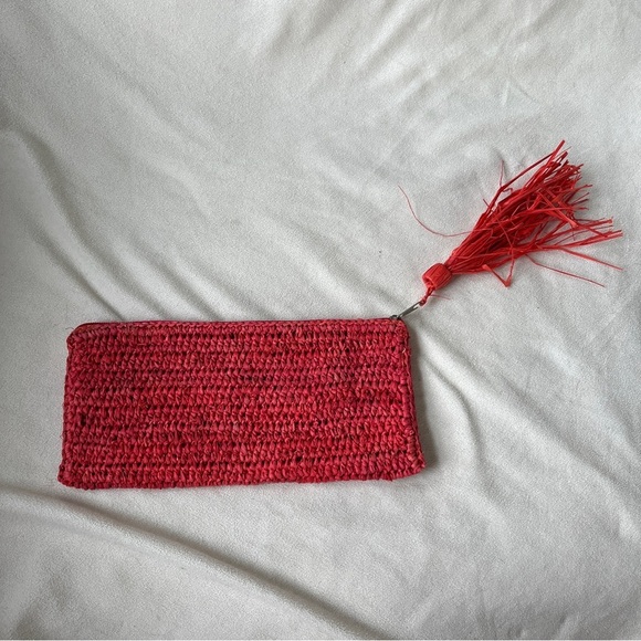 Mar Y Sol Straw Woven Zipper Pouch Long Wallet Sized