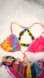 Vibrant bikini top featuring intricate beadwork and a mix of colors. Perfect for a standout beach look.