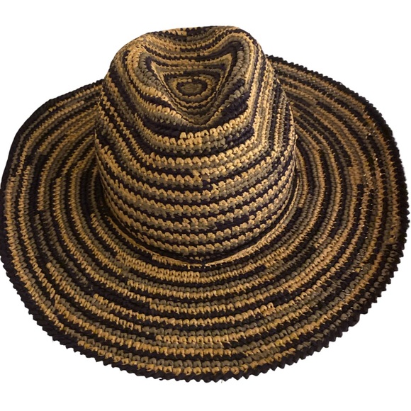 Mar Y Sol Handmade striped tan and black hat.OSFM straw made in Madagascar