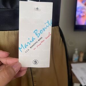 This stunning black and gold evening gown is perfect for any formal occasion. The elegant design and luxurious colors make it a standout piece in any wardrobe.