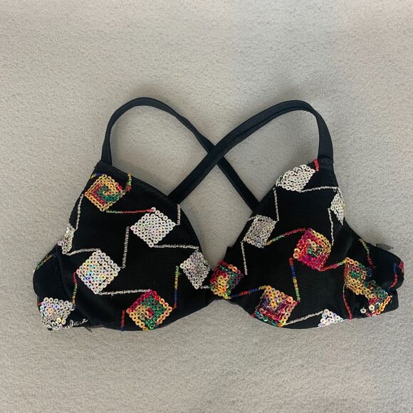 Mara Dancewear 32A Black Sequin Dance Bra Top Festival Clubwear Performance