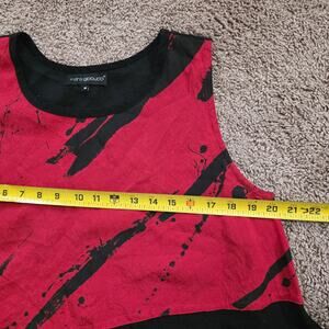 Mara Gibbucci Tunic Blouse Med Red Lagenlook Asymmetrical Linen Sleeveless Boho