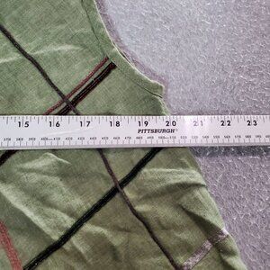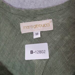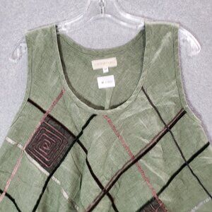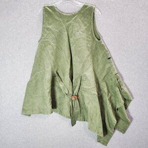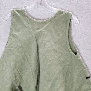 Mara Gibbucci Women Top Medium Green Linen Tank Lagenlook Scoop Neck Tied Back