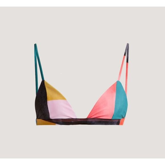 Mara Hoffman Astrid Blue Multi Triangle Bikini Top Size M UPF 50+ Colorful 80s