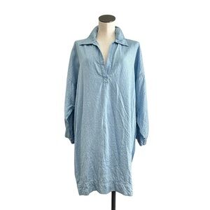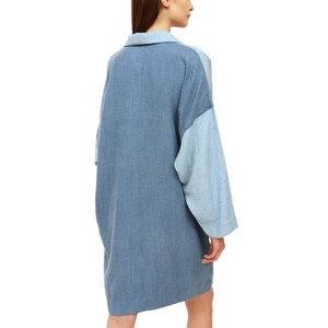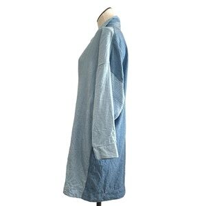 Mara Hoffman Blue Embroidered Stripe Two Tone Color block Lagenlook Shirt Dress