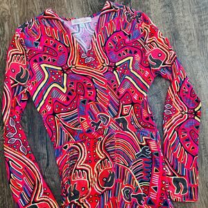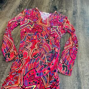 Mara Hoffman Dress All Over Tribal Print Bold Colorful V-Neck Stetchy Small