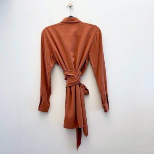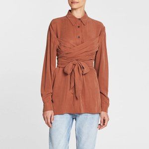 Mara Hoffman Ella Wrap Tie Shirt Button Down Rust