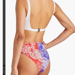 Mara Hoffman's 'Imina' bikini briefs are cut from smooth stretch fabric that offers UPF 50+ protection. They're printed with a color-block paisley motif and have a high-rise shape that offers medium coverage.